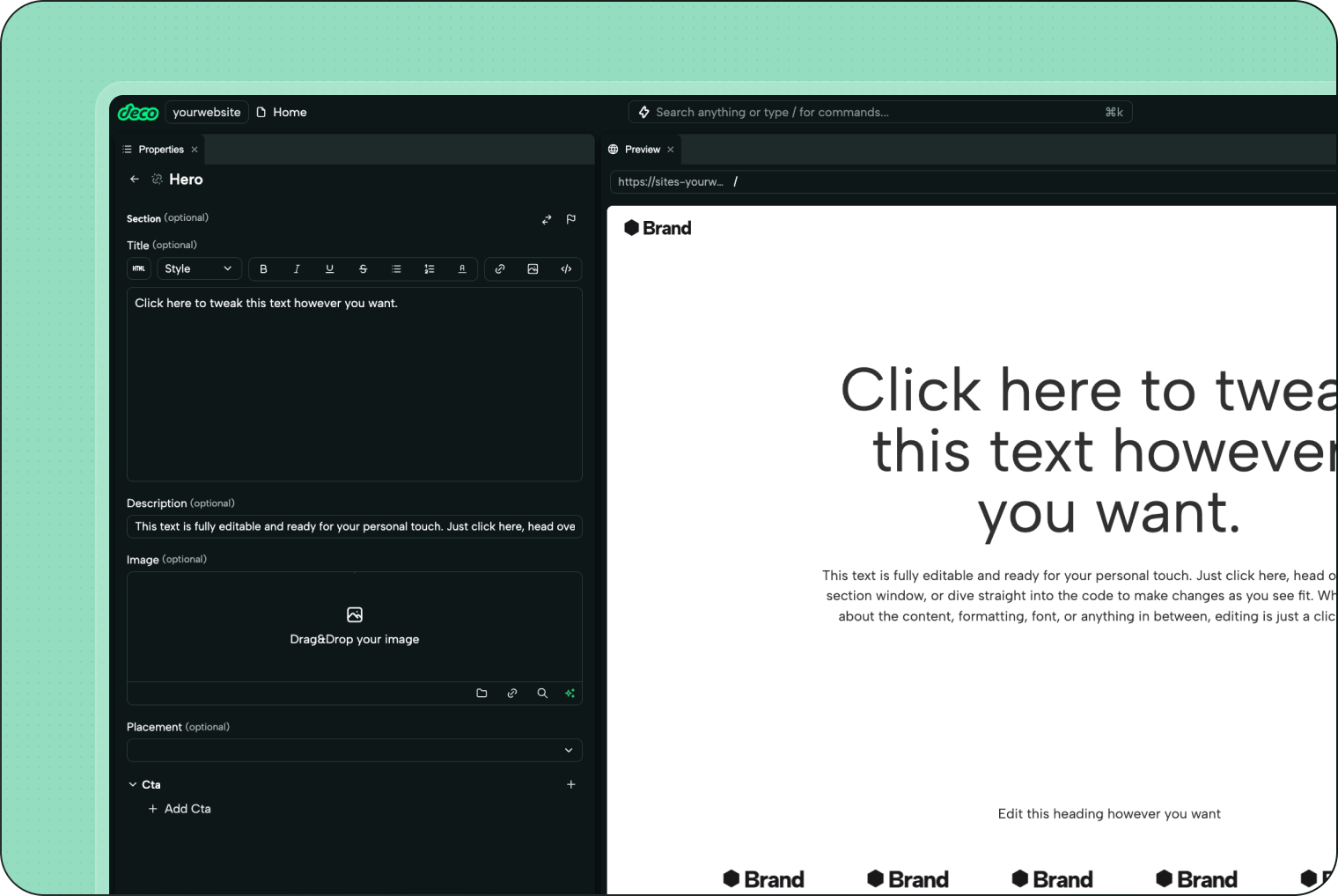 Totalmente editável e com análises usando deco.cx